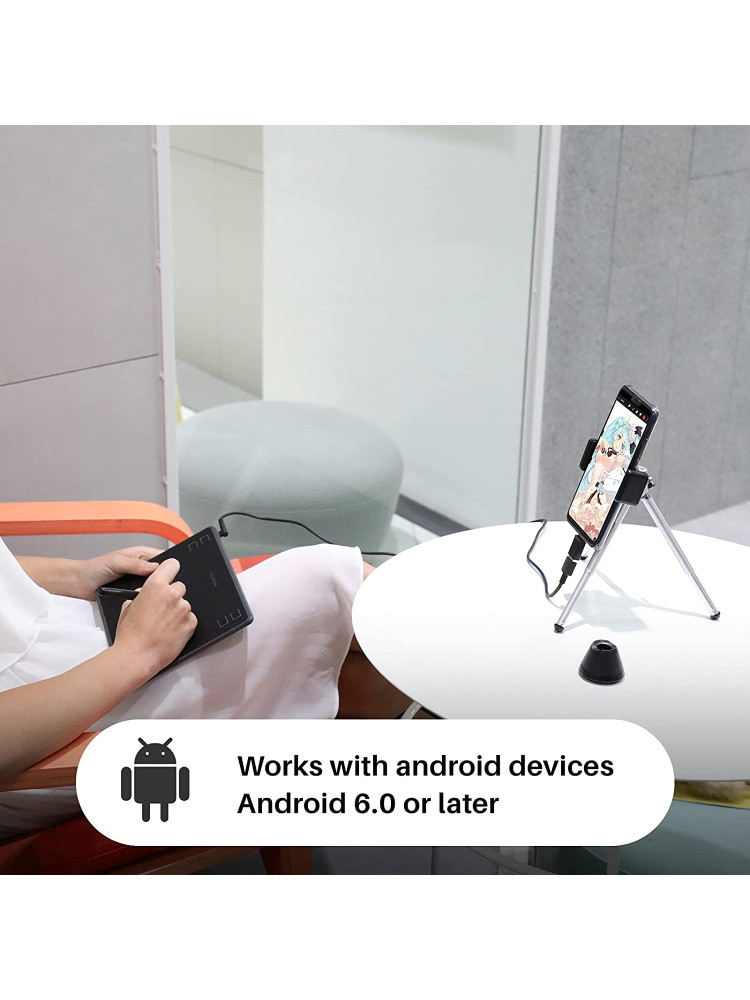 Firmware GÜNCELLENDİkten sonra telefonunuzu OTG konnektörü ile kolayca tablete bağlayabilirsiniz. Üretici yazılımını Huion resmi web sitesinde bulabilirsiniz. (OTG konektörünü ayrıca satın alın); YALNIZCA Android 6.0 veya üstü ile çalışan cep telefonu ve tablet desteklenirken iPhone ve iPad şu anda DEĞİLDİR.