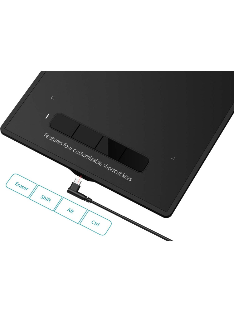 XP-Pen Star G960 en iyi çizim tableti Özelleştirilebilir dört kısayol tuşu içerir